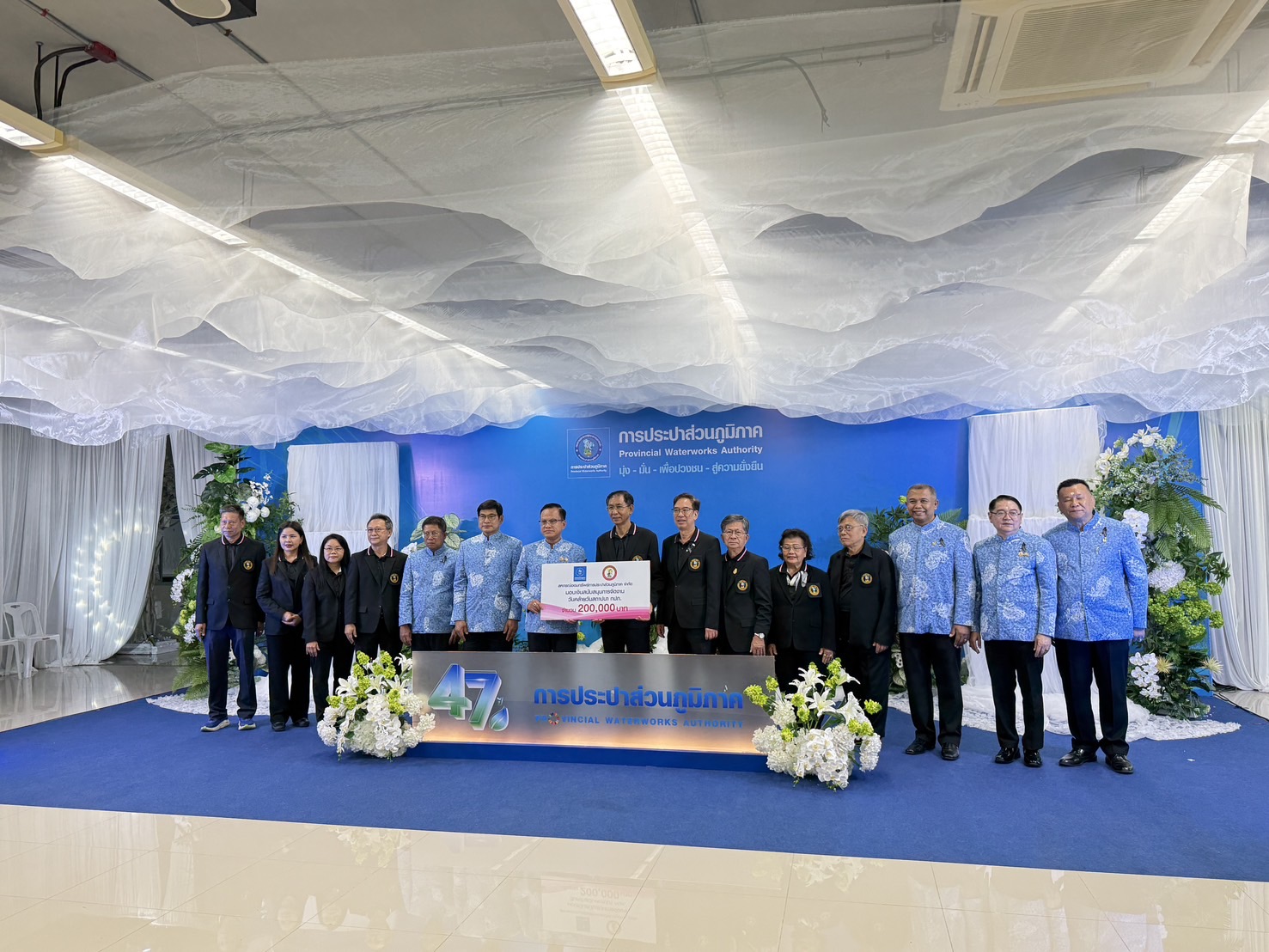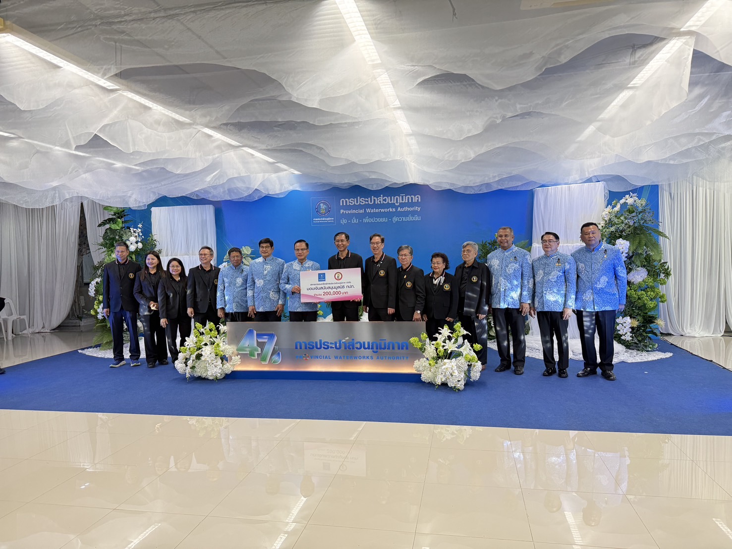 คณะกรรมการดำเนินการและเจ้าหน้าที่สหกรณ์ออมทรัพย์การประปาส่วนภูมิภาค จำกัด เข้าร่วมแสดงความยินดีเนื่องในวันสถาปนา กปภ.ครบรอบ 47 ปี การประปาส่วนภูมิภาค เมื่อวันที่ 27 กุมภาพันธ์ 2569 ณ สำนักงานใหญ่ การประปาส่วนภูมิภาค สอ.กปภ.ได้ให้การสนับสนุนการจัดงานวันสถาปนา กปภ.เป็นเงิน 200,000.-บาท และสนับสนุนเงินให้มูลนิธิการประปาส่วนภูมิภาค เป็นเงิน 200,000.-บาท